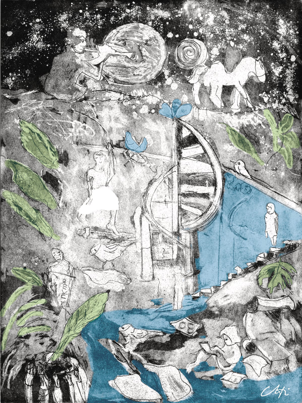 puis à la gravure, du monotype à l'aquarelle....L'interprétation du sujet m'impose un choix de technique.