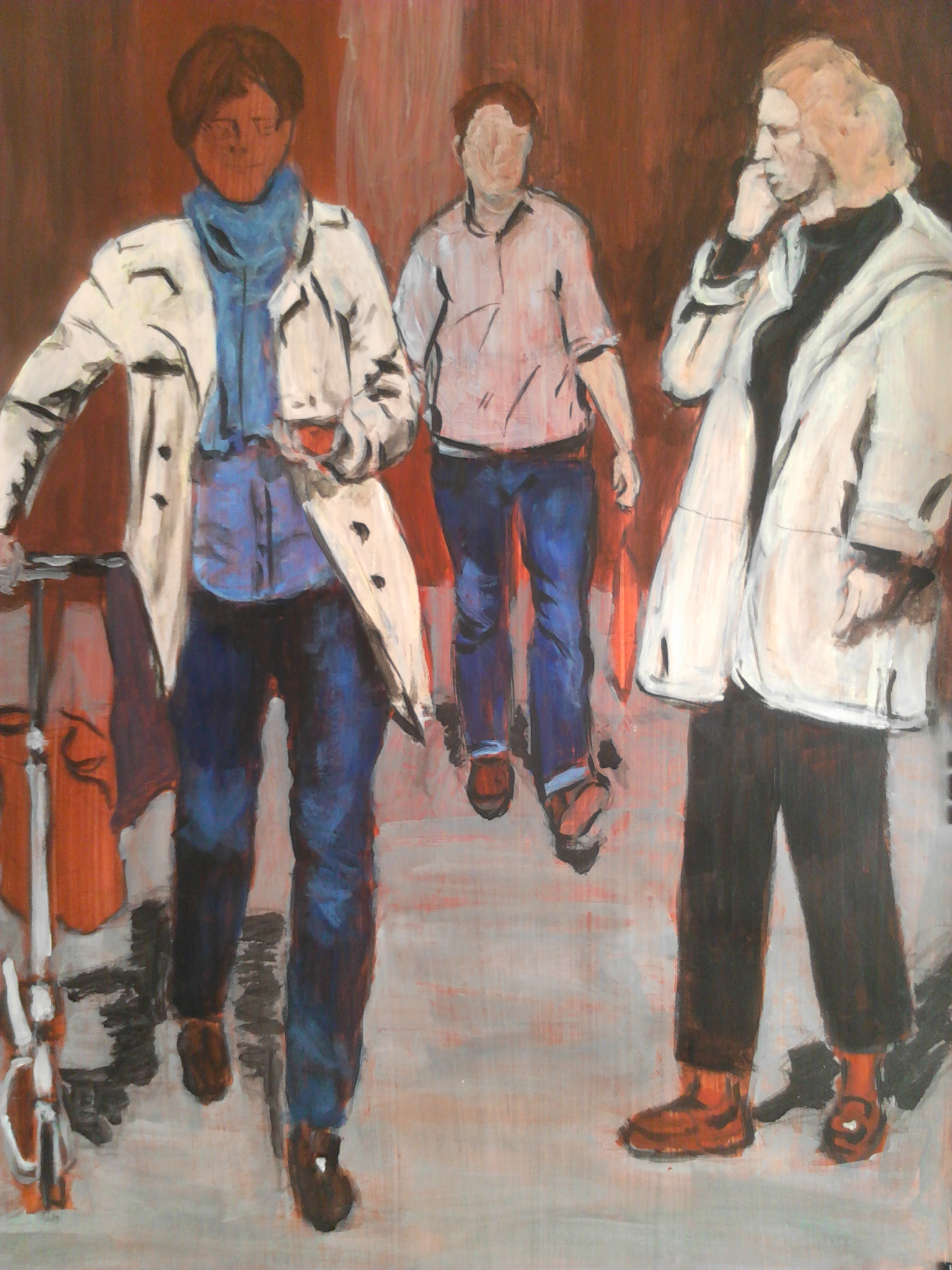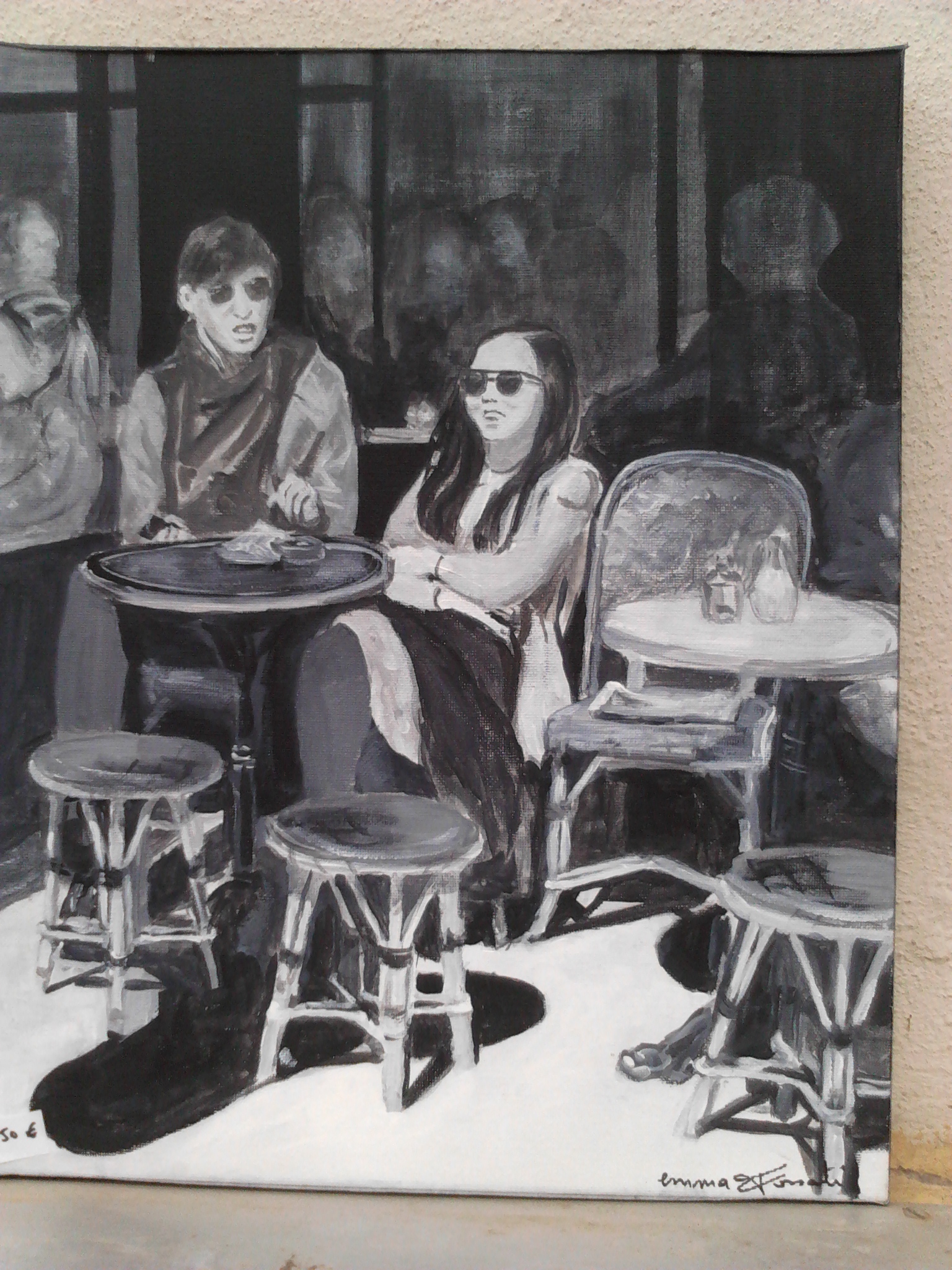 Je considère un tableau comme une oeuvre de transmission, le noir et blanc pouvant représenter le passé et la couleur le temps présent. J'axe mon travail actuel à représenter des scènes de rues, reflets de notre société actuelle et source d'inspiration infinie.