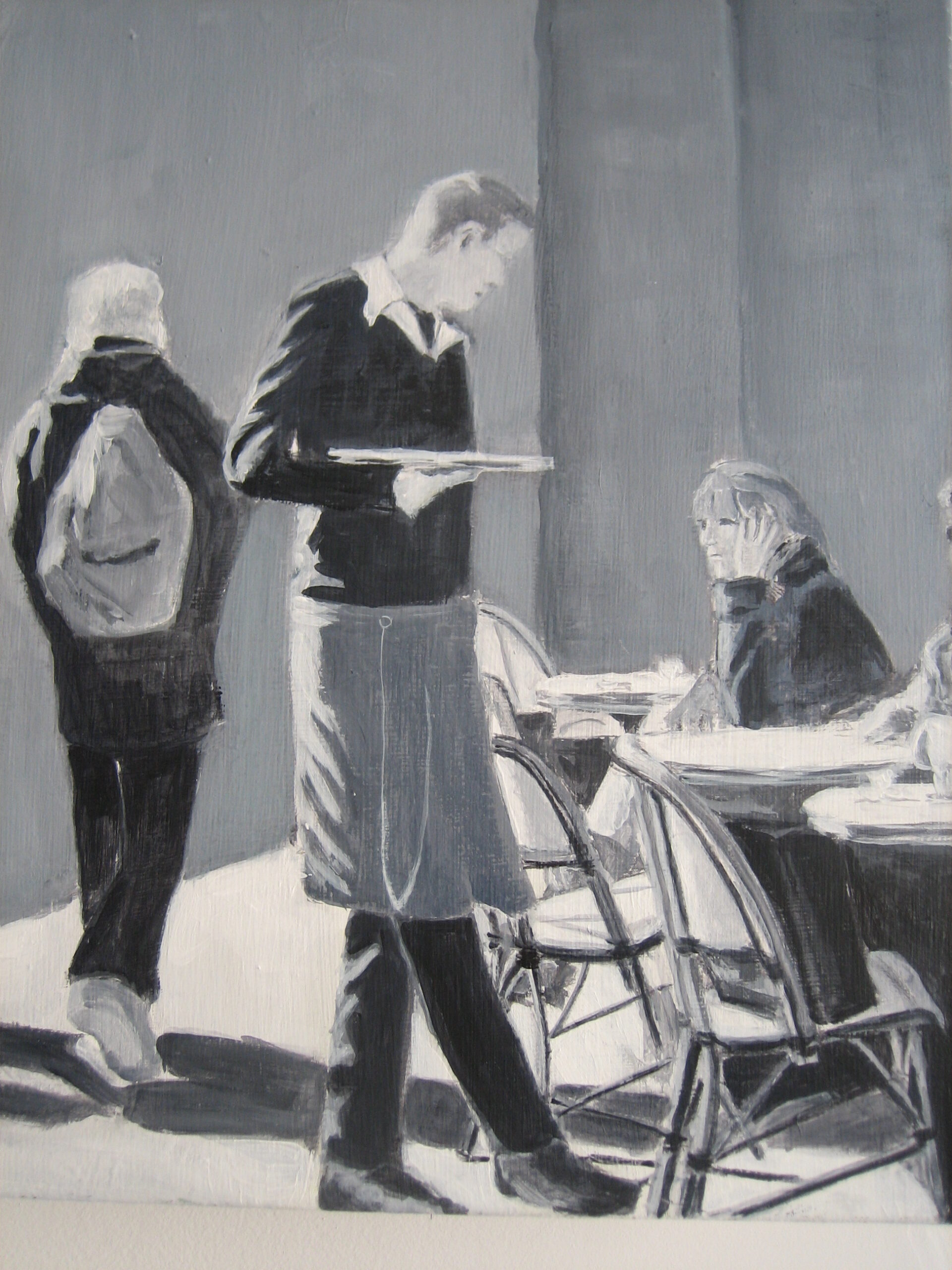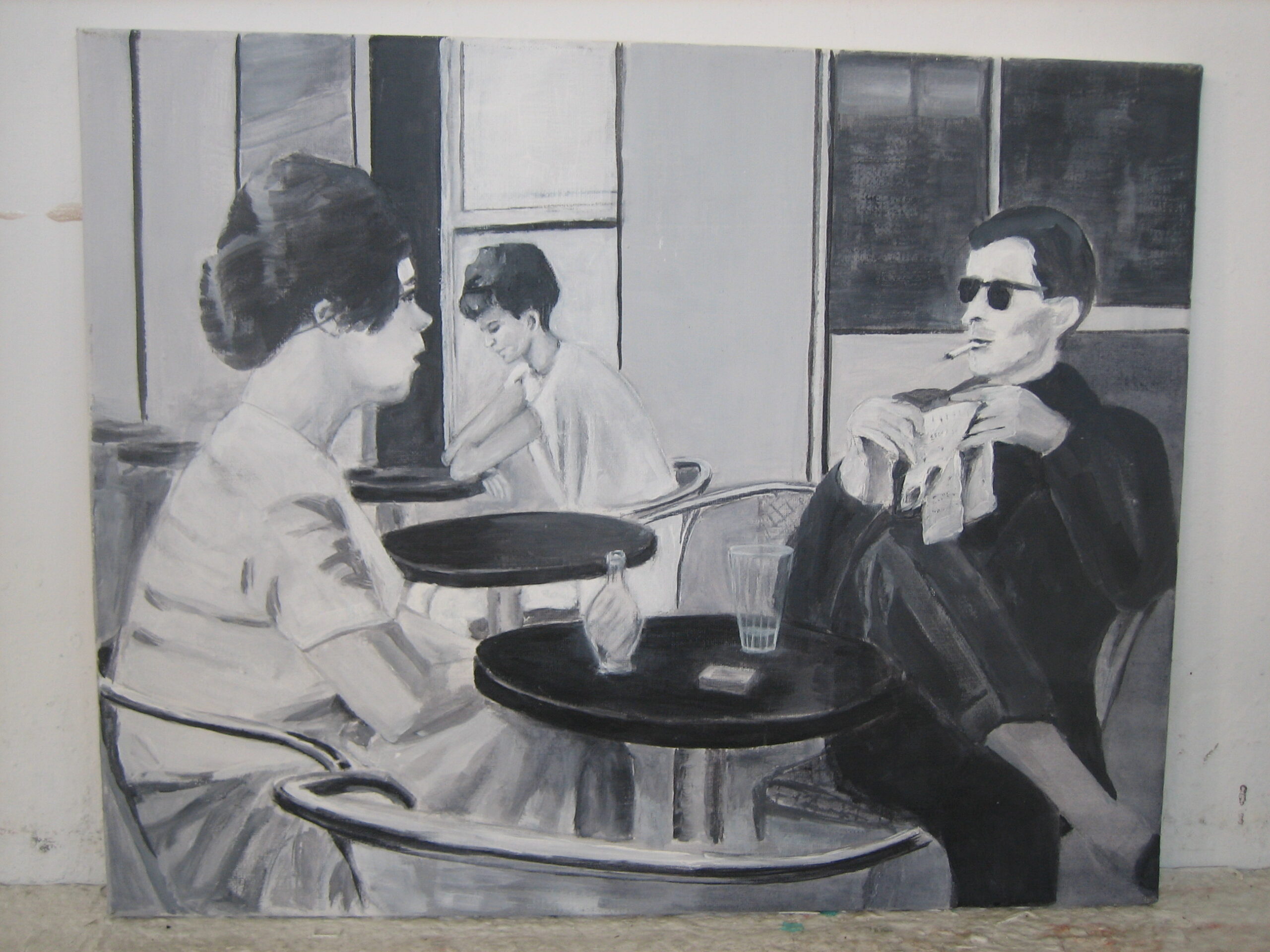 Mes premiers travaux étaient axés sur la technique du dessin. Une coupure de journal représentant Jean-Luc Godard à une terrasse, a contribué à un tournant dans mon travail. Je réalisais une transformation de l'image photographique en peinture , en noir et blanc , alliant ainsi l'acrylique ou l'huile à ma forme d'écriture initiale qui était le dessin.